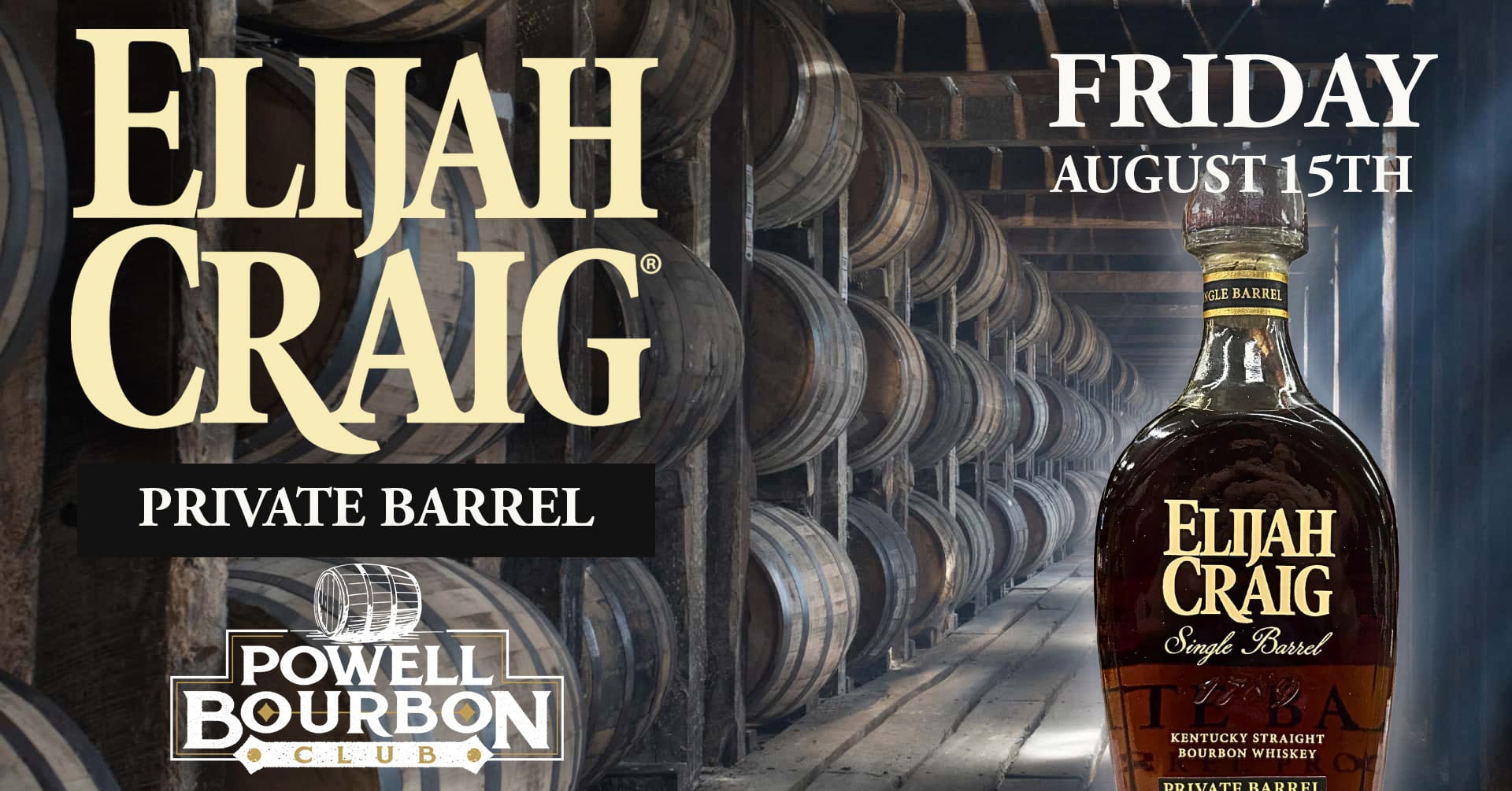 This is it. A rare opportunity to go behind the scenes of the Heaven Hill Distillery, and venture deep into the rickhouses at their home in Bardstown to taste, test and select our own Powell Bourbon Club Elijah Craig Private Barrel.